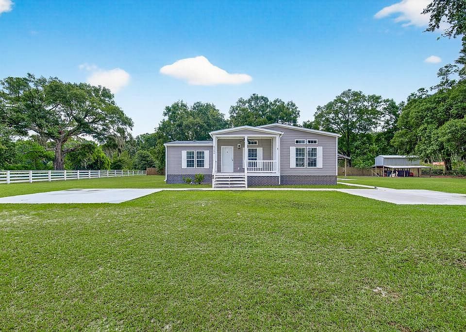Welcome to this stunning 2019 meticulously maintained 3 bedroom 2 bath home with over 2000 sq ft of well designed living space. This slice of country living sits on an acre of land that is fully fenced in. Step onto the front porch and into a bright, open layout. As you enter into the home you will notice the 9-foot ceilings, a spacious living room that is filled with natural light and the added touch of board and batten on the walls. The heart of the home features a well-appointed kitchen with a farmhouse sink, walk-in pantry, and charming shiplap walls that add character and warmth. Separate dining room off the kitchen to enjoy your dinners. The home’s split bedroom design ensures privacy and comfort. The large primary bedroom includes a walk-in closet, a spacious en suite bath with a garden tub, walk-in shower, and dual sink. Generous inside laundry room. Enjoy outside gatherings under the 20x20 carport. You have two additional 20x20 concrete slabs, and a barn for storage. Home was constructed with 2x6 sidewalls. New HVAC 2024. No HOA. If you’re looking for more room to spread out, this property delivers practicality, space, and peace of mind. Conveniently located. Schedule your showing today.