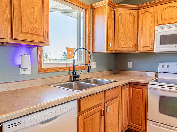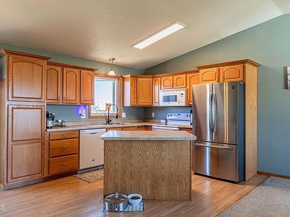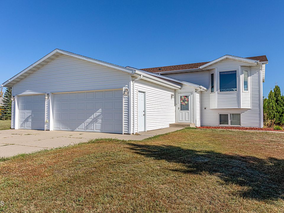 Great rural property very close to Bismarck. Located in Harvest Grove development, this property is 1.65 acres with established pine tree lines the north and southeast property lines. This split entry home features a open concept main floor with living room, dining room, kitchen, 2 bedrooms & 2 bathrooms. The basement is finished with 2 additional bedrooms, 3/4 bath , family room & laundry room. The home has a 3 stall attached garage plus an additional 15 x 26 garage for extra storage. The main floor features, great windows, lots of day light, vaulted ceilings. Master suite has walk in closet and master bathroom. This property has Natural gas heat, central air ,rural water membership & private trash pick up. Seller will credit buyer $5000.00 towards carpet replacement with acceptable offer. Contact your favorite realtor to show. Buyer/Agent responsible to verify all information on property.
