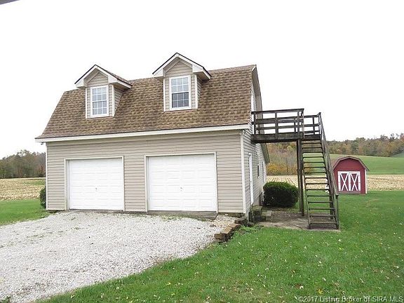 Wonderful home on large lot, Lanesville schools, Harrison County taxes yet close to I-64 Georgetown exit. Updated kitchen has beautiful pine cabinets, tons of storage and room for your table. Dining area has door to covered deck, big back yard with mature trees. Amazing detached garage with concrete floors, 3 overhead doors, a finished upstairs for storage, a lean-to for mowers, tools etc. Carport with concrete pad attached to the house. The property has been well maintained- new laminate flooring thru out, new carpet and paint, new water heater 2016, new siding & new roof 2012, New septic 2017. Washer, dryer, stove, refrigerator, dishwasher and microwave included. Nothing for you to do but move in! Call for your showing today! All sq footage is appx & should be verified by the buyer.