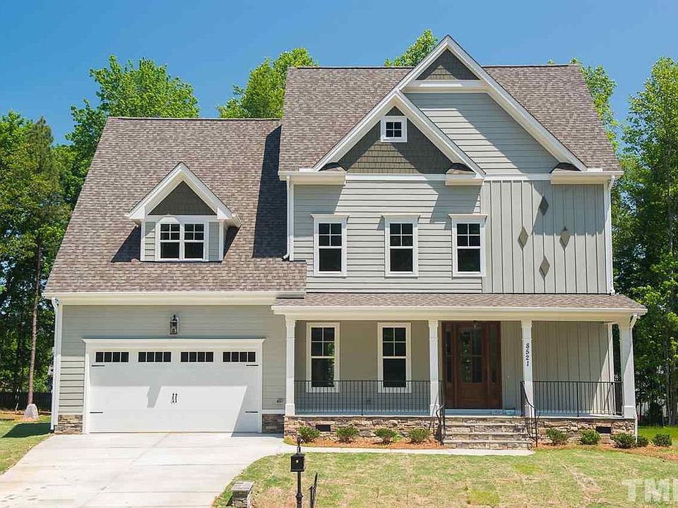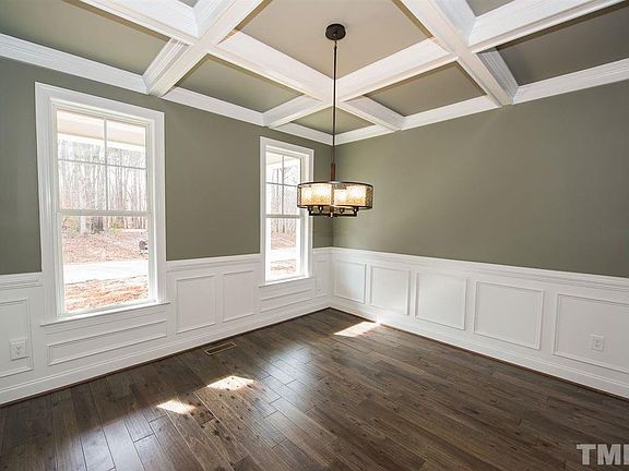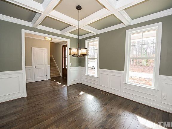 Custom built "Aberdeen" plan on wooded lot! Hardwoods thru out 1st floor except bdrm. 9ft ceilings 1st & 2nd floor. 1st floor bdrm, office or playroom. Kitchen w/custom cabs, granite, tile bkspsh, KitchenAid SS appliances & 5 burner gas stove. Lrg walk-in pantry. Spacious family rm. Master suite w/spa like bath & 3 WI closets. Large walk-up attic. Screened porch w/aluminum frame/rails. No rot exterior. OnQ home network box. No city taxes 15 min to downtown Raleigh.