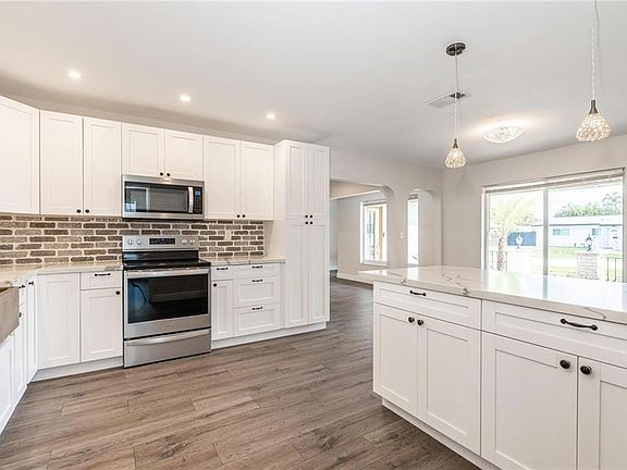 This stunning home in Pasadena Lakes has been thoughtfully remodeled from floor to ceiling, boasting over $100k in upgrades to create a luxurious living experience. The custom kitchen features top-of-the-line upgrades, including beautiful wood cabinetry, sparkling quartz counter tops, and a full set of Whirlpool appliances, including a range, refrigerator, dishwasher and microwave. The wood plank tile floors throughout and new impact windows and doors provide a sleek and stylish look, while the roof replacement in 2018, new A/C in 2019, and replacement of the underground plumbing ensure that the home is fully functional, worry-free, and truly like new. This home is ideally located within walking distance of a park and elem school. Don't miss the opportunity to see this home for yourself!