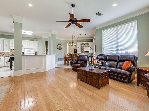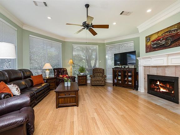 Welcome to this beautiful one level home with great curb appeal, located in an extremely desirable subdivision in Rowlett. Experience the large front porch, beautiful trees and landscaping. This home's extensive floor plan includes, numerous custom built-ins, French doors in living area, triple crown molding, wide baseboards, intricate detailing in accent windows and many more desirable details. Entertain with ease in this exceptional plan that is open and airy and flows efficiently throughout the home. The bedrooms are divided with the master and one bedroom located on one side of the home and 2 bedrooms on the other. Spacious kitchen, 2 living and dining areas offering plenty of room for family fun and gatherings. Updates include new roof, gutters, kitchen counters, backsplash, master bath shower, soaking tub, and various windows. Beautiful backyard view includes a lush greenbelt, multiple trees, and spacious grassed area. Don't miss the brick workshop with electricity in the back. 2022-11-15