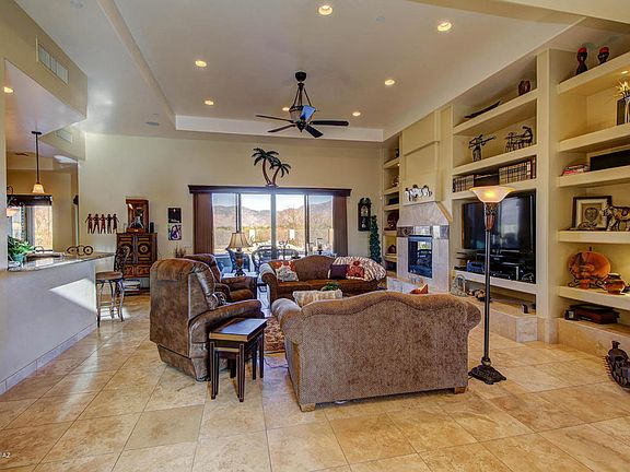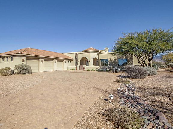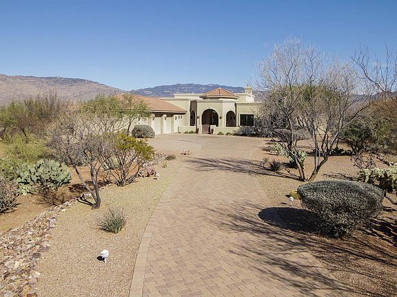 Must see this Gorgeous 5 BR, 3.5 BA custom built home on over 2 acres! Located in the highly desirable gated community, Coyote Creek! Fantastic upgraded finishes abound. Travertine tile, ceiling speakers throughout, gorgeous etched glass front door, recessed ceilings, and plantation shutters! The kitchen is a chef's dream with beautiful granite counters, double ovens, gas range, a prep sink, and stainless appliances. Separate formal dining room makes dinner parties a delight along with a wine closet near by. The spacious master retreat boasts a fireplace and tons of windows to gaze upon the spectacular Rincon Mountains. The back oasis is perfect for entertaining with a beautiful pool w/water fall, fire pit, outdoor kitchen, and unobstructed views! Located in the Vail School District.