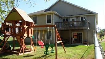 2.5 ACRE wooded with creek. A beautiful 3BR 3BA walk out ranch. Partially finished basement has recreation room with wet bar and mini frig that walks out to back fenced area with child's play fort and swing set. Qualifies for Rural Development Loan Guarantee Program Financing