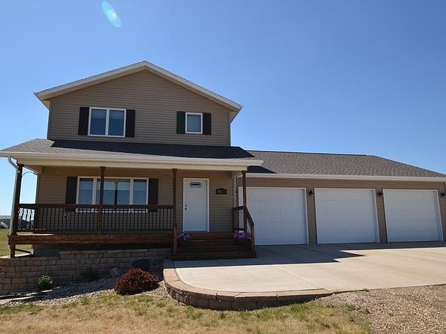 Enjoy this IMMACULATE 4 bed, 4 bath home on a cul-de-sac rural setting within minutes of Bismarck! The kitchen features custom backsplash tile, pantry and island, perfect for your storage needs. Solid hardwood doors are showcased throughout the home. The upper level has a large master suite with a walk in closet and a 3/4 bath. Also in the upstairs, 2 additional bedrooms and 1 full bath and laundry. The basement features a custom stoned gas fireplace that will keep you warm in the winter, along with another conforming bedroom and full bath. The oversized, fully finished attached 36'x36' garage is heated with water/drain and has 10' wide garage doors. If that's not enough storage this property has a detached 27'x23' garage w/10 ft side walls, electricity, sealed floors and garage door opener for the 16x8' garage door. A maintenance free fence surrounds a private deck and patio and large gazebo in the backyard. The yard is also lined with beautiful pine trees!