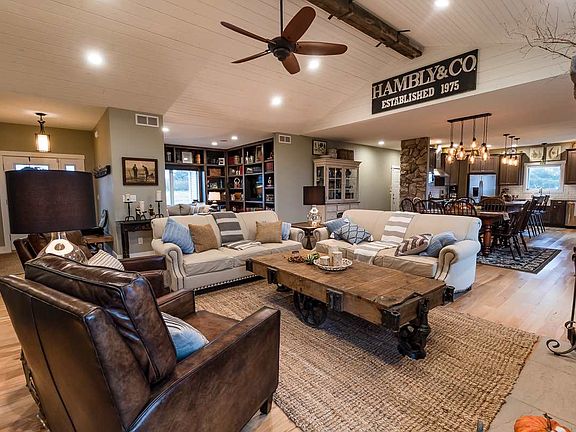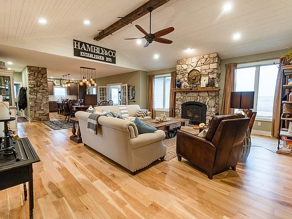 Modern elegance with a farmhouse feel; Joanna Gaines style! Situated on 36.56 acres just South of Waterloo, this stunning 3-bedroom, 4-bathroom ranch style home will captivate you from the moment you walk in the front door! Built with meticulous quality craftsmanship, this beautifully designed open floor plan is so perfect for entertaining family and friends. The dream kitchen features hickory cabinetry and flooring, granite counter tops, an apron front sink and a custom center island topped in stainless steel. The kitchen flows seamlessly into a 4-seasons room with a panoramic country view perfect for enjoying your morning coffee. The spacious living room is accented by a cozy fireplace and is open to an additional gathering space and library. Quality finishes and living spaces continue in the lower level featuring the 3rd bedroom, additional bathrooms, a beautiful full kitchen and a family room with another fireplace that opens to a spacious outdoor entertaining area. You will love the home theater room which could easily be converted into a 4th bedroom master suite, an exercise room and office area. Geo thermal heating and cooling for supreme efficiency completes this dream home along with an attached 3 stall heated garage. A 104 x 72 ft. outbuilding is also included. 33 of the acres are tillable and are currently generating income. This is truly a fabulous offering! Call for your private showing today!