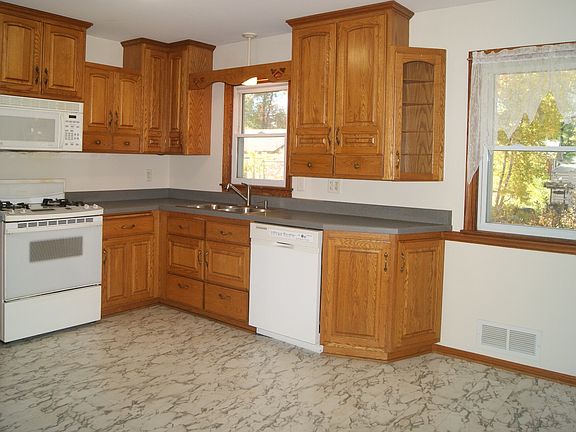 WOW! Many updates include roof, windows, landscaping, custom kitchen, new oak kitchen cabinets, new carpet, AC, fenced yard, extra storage added to garage and drive thru garage to big private back yard. Perfect family home.