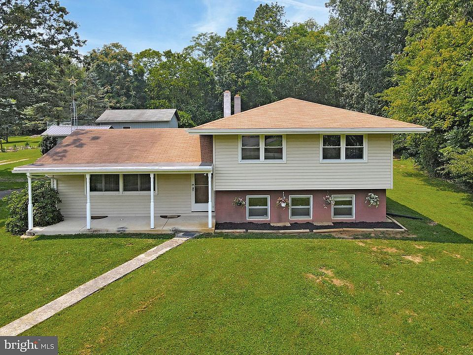 COUNTRY LIVING! Beautiful 1.63 acre lot with multiple outbuildings and a spacious multi level home! Home features an entry level KT with new countertops & attached dining area, sunny living room with HW floors & picture window + 1/2 bath. Upstairs has 3 BDRMS (all with HW floors) & large, full remodeled bath. Lower level has family room, 4th BDRM & bonus space (currently holds W/D but if removed there is hookup for wood stove). Basement level is great storage & has hookups for W/D + walkup exit to exterior. 1 car attached carport. Replacement windows. Outside there is TONS of parking & multiple outbuildings all on this flat open lot that backs to treeline for privacy. If you are looking for space-inside & out-this is a MUST SEE!!