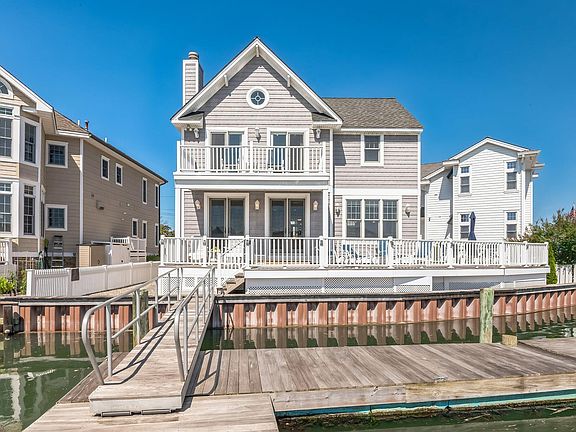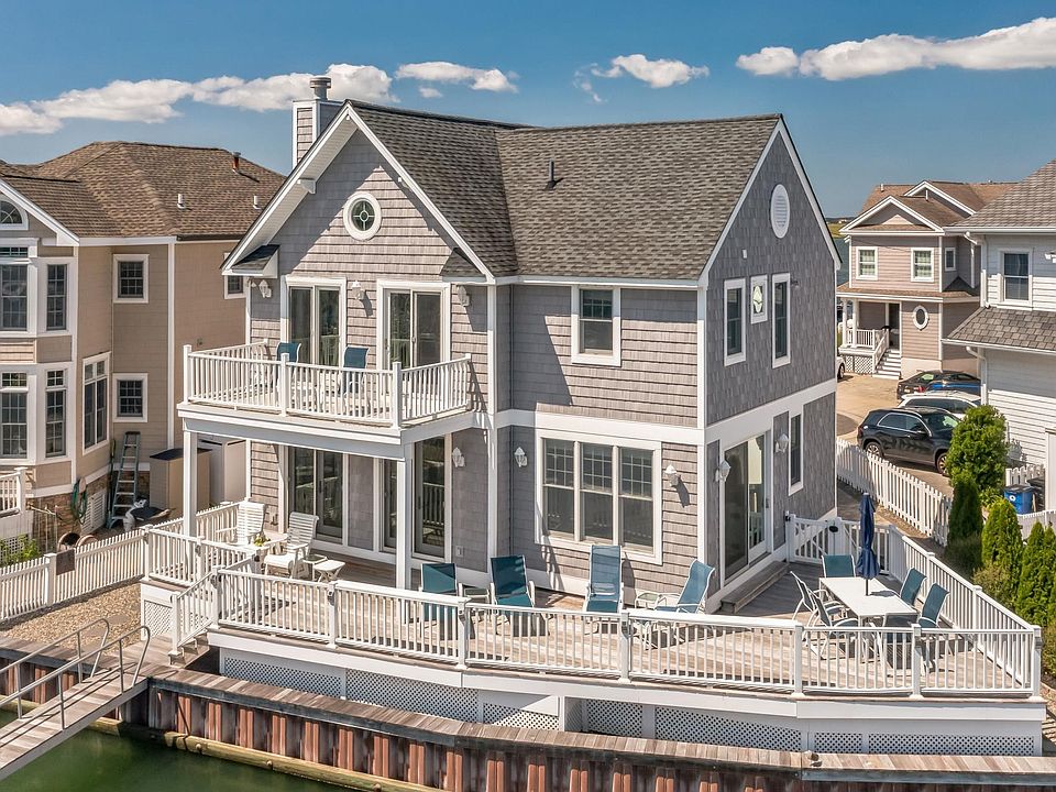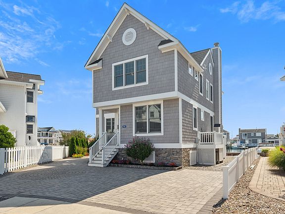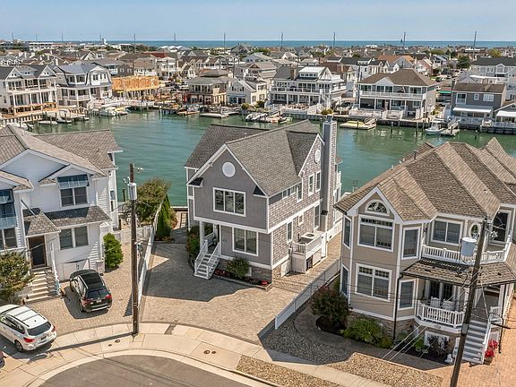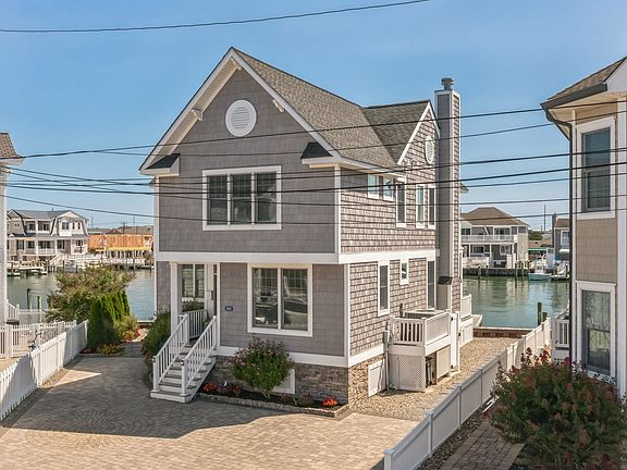 A Very Cozy Stone Harbor Bay Front on a Quiet Cu-DE-Sac located on neighbor friendly South Basin. This location is one of the most protected Bayfront properties from the weather elements in all of Stone Harbor. There is a short walk to the 96th st shopping district, Yacht club, Windrift and Icona. Watch the magnificent Sun & Moon rise over the basin which glistens on the lagoon. There is ample car parking that can accommodate at least four cars with a nice Paver base. As you enter the foyer the first room to the right offers a flex space bedroom-TV sitting room which is next to a full bath. Exiting out of the foyer you enter an open space theme with a living area, kitchen and dining area. The Living room houses a fireplace and maple hardwood floors with a wonderful Coffered ceiling. The Kitchen features Cherry Cabinets, granite counter tops and stainless-steel appliances. Both the dining and living area have large glass sliders that lead out to a nice wrap around deck that includes an outdoor dining area. From the deck sitting area you can observe the many species of wildlife and or watch the boaters, kayakers, paddle boarders and swimmers. The floating docks include 2 boat slips and plenty of room for a jet ski, kayaks and paddle boards. The second-floor houses 3 bedrooms with two full bathes and a laundry area. The ample sized master bedroom is very spacious housing a king size bed and wonderful full bath. The lot can accommodate Additional square footage.