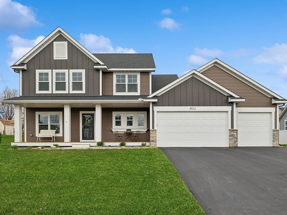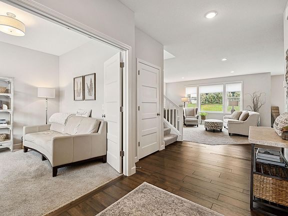 Welcome home to this gorgeous "like new" two story situated on a prime lot in the sought-out Legacy neighborhood in Lakeville. This former model home by the award-winning builder Country Joe is only available due to job relocation. This popular Richmond floorplan is loaded with upgrades throughout, meticulously maintained, CLEAN and move in ready! The open and airy main level features 9 ft. ceilings, a home office and additional "flex space", large kitchen and living room, gas FP and huge mudroom with walk-in pantry. Enjoy two big stamped concrete patios, a heated garage with electric car charger and a professionally landscaped yard complete with an irrigation system. Fully finished lower level with the 5th bedroom and full bathroom. The home has tons of great storage throughout. Walk to the neighborhood park. Easy access to Hwy. 35 for quick commutes. Move in and enjoy all this home has to offer!