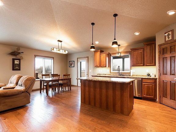 Slab on grade Patio home located in NW Rural Bismarck with numerous upgrades. 6 panel doors, upgraded appliances and fixtures, hickory flooring, heated tiled bathroom floors, arched doorways and more. Wonderful 2 bedroom 2 bath home featuring an open concept! The kitchen offers a large center island, hickory cabinets, walk in pantry, recessed lighting and HD countertops. Open to the living room with a gorgeous fireplace wrapped in stone and the dining room offers patio doors leading to a nice sized covered patio. The primary suite offers tiled walk in shower w/ Haider glass door, heated floors, large vanity with dual sinks, and huge walk in closet. There is also a patio door w/ access to a large exterior patio w/ sprinklers and over 100 growing trees w/ drip line that surround the perimeter of the home. An additional bedroom also has a walk in closet and is adjacent to the main bathroom with tiled tub/ shower combination and heated floors. The triple garage is fully finished, heated and has storage. Great home! See this one today.