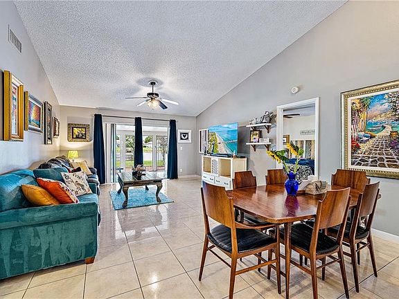 This inviting 3/2 corner villa with one 1 garage overlooks the beautiful lake & is ready for its next owner! Features include functional floor plan with split bedrooms & vaulted ceilings. Welcoming kitchen boasts new stove, microwave & refrigerator. Newer washer & dryer too! Out back, you'll find a wide enclosed porch with plenty of beautiful green space & panoramic lake views from living area, second bedroom & primary bedroom. The property comes with its own private dock, great for fishing or enjoying those gorgeous Florida sunsets. Complete hurricane protection accordion shutters & brand-new hurricane rated front door. Low HOA includes cable, internet, lawn service & sprinkler maintenance. Not to mention the community pool, playground, tennis courts basketcall court & top rated schools!