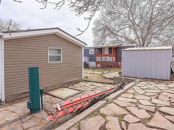 Beautiful Manufactured home on a slab foundation in Thornton. New Roof 2022. You own the land and the home for just under 300k.This home also comes with a large covered carport, outdoor shed and washer/dryer hook ups in the laundry room. Spacious living room, Master Bedroom, 2 full bathrooms, one fully undated. Great looking home with private yard perfect for family BBQs. Located in a quiet and well-kept controlled HOA neighborhood. Perfect for first time buyers and built equity or as an investment. This home is move in ready. It won't last!!!!!