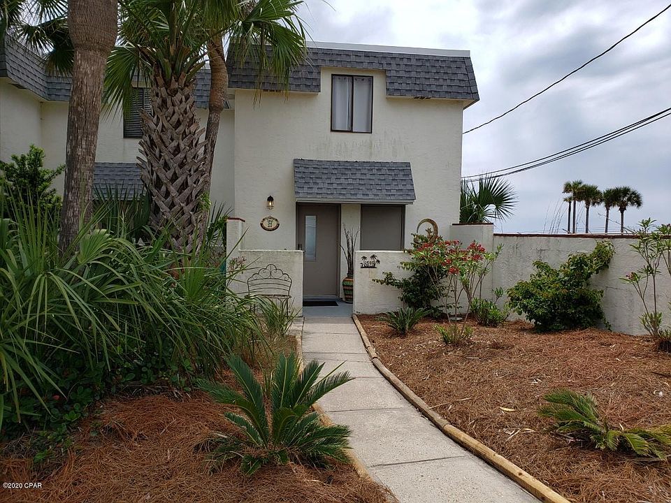 BEST DEAL FOR A GULF FRONT HOME IN PCB. CASA DEL SOL is a beautiful, ,bright and airy, newly remodeled end unit next to access #22 Gulf Front townhome right on the beach with no HOA and in an X flood zone. The views and sunsets are amazing along with the Gulf breezes. All stainless steel appliances, new luxury vinyl plank flooring throughout, new roof installed a few months ago, dual HVAC systems, 3 full baths, and very nice furnishings included. This home also has roll down metal storm shutters that cover both patios and a outside 3x8 storage.