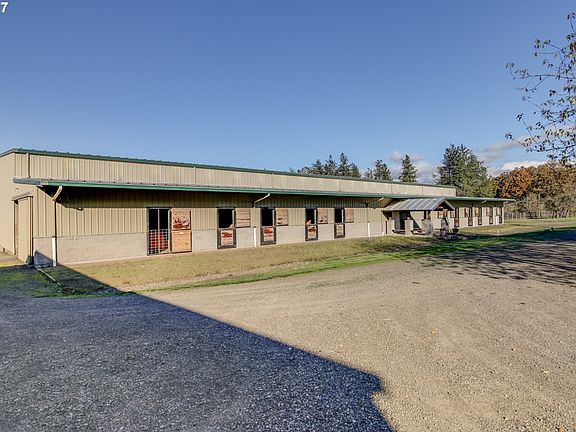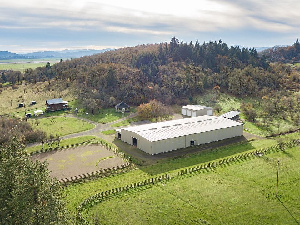EQUINE FACILITY w/100x200 steel frame arena. $675k in 2002 construction costs. Includes 11 12x12 matted interior stalls, h/c wash, tack room, viewing room. 125x164 outdoor arena. 50x54 SHOP w/13' & 16' roll up doors. 22x66 covered concrete composting bldg. Extensive no climb fencing, 1 mile jog/hike track. Amazing clubhouse/office. RV Hookup. Hay yield 15-23 tons. Approx 50 ac in hazelnut soils. 2 Wells. Potential for addtl build site.