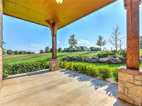 Country living less than 30 minutes from downtown Oklahoma City! This beautiful 1.37 acres home is situated in heavily wooded neighborhood, imagine yourself relaxing on the front porch while enjoying a panoramic view of the ever changing Oklahoma skies â How cozy? Great amenities including beautiful 8' metal front door, spacious open floor plan, living room has wood floor & vaulted ceiling, kitchen has granite counter tops & pantry, Z-Wave programmable thermostat & light switches, Surround sound in living & Bonus room, mud bench, breakfast bar, stainless steel appliances, master has dual vanity, walk-in shower & tub, sink in utility room, 16 SEER HVAC, sprinkler system, ceiling fans, granite counter tops throughout, storm shelter, Great location â easy access to I40 & I240, minutes to Tinker. Study can be 4th bedroom.