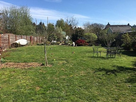 Step into an established home with an Urban Farm setting! Blueberries, Strawberries, Raspberries, Peaches, Figs, Plums, and the raised beds are ready to plant your garden of choice. Available for tour/viewing October 22nd for move in. 1 year lease required then month to month after 1-year or renter's preference. The House: Upstairs has 2 bedrooms with hardwood floors and an exit out sliding door to the backyard. The bathroom has tub/shower which was redone in 2013. Kitchen has new electric stove/oven and includes refrigerator. Living room has hardwood floors and built in hyperbolic architect designed book shelf. Partially finished basement has an additional bonus room, bathroom with shower, new toilet, new sink, new hot water heater, and washer and dryer. The ceiling height is 7'8" so no cramped basement feel. It was used as our guest bedroom, and professional art studio. The house has forced air oil heat with a newer furnace and also has a great TRANE Air Conditioning unit. This is a solid home and much desired neighborhood within short walk to Pier Park disc golf, Pier Park public pool, skate park, minutes to Community Center, downtown St. Johns, Library, and the Willamette River. DOGS will be considered upon approval and depending on breed. Sorry NO CATS. The separated 12'x20' garage is empty and for renter's use. $2,150 includes Rent, lawn service,limited landscaping, and Trash service. Renter pays water, electric, internet/cable, and oil to be refilled upon end of lease. 1st months rent + $2,150 deposit required. Renters must get applicable renters insurance and be able to prove steady and appropriate income. There will be a credit check and application required through Zillow. Owner pays Trash and bi-monthly yard care included in rent. Renter pays electric, water, and fill oil heater tank upon leaving.