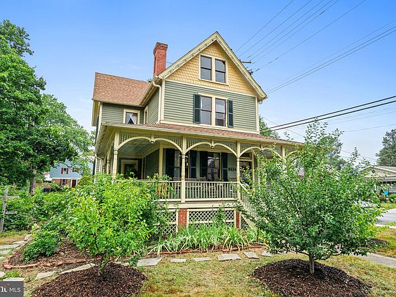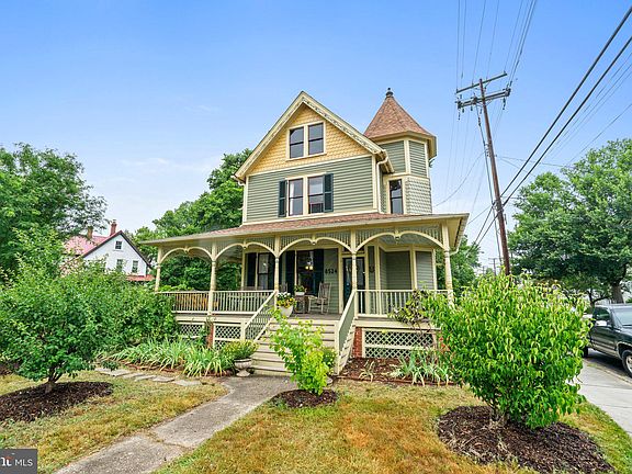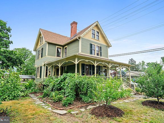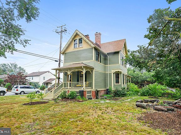 Situated on a remarkable double corner lot at 8524 Potomac Ave, the Lake House is a Prince George's County Historic site; the sole surviving example of the late Victorian Queen Anne architectural style in this area. This 1894 home has captivating historic character and an outstandingly distinct style, yet beautifully blends into the Berwyn neighborhood of College Park. The property boasts a level yard with ample space for gardening, a fire pit area, sandbox, both storage shed and garage, and off-street parking. Thoughtful and mature landscaping surrounds the house, providing a picturesque view from the inviting wrap-around front porch and rear covered porch. The current owners have cultivated a bountiful vegetable garden and foundation plantings full of roses and peonies. There are grapevines, blackberries and raspberries, as well as heirloom varieties of peach, pear, apple, plum, apricot, and pomegranate trees! Preserving many original details both inside and out, this home is an exemplar of Queen Anne style. Notable elements include an octagonal tower, novelty shingle siding, and an ornate verandah adorned with a frieze course of knobbed spindles and turned pendants, accompanied by an impressive coffered ceiling. The current owners have lovingly restored and improved various aspects of the home, including a new roof and gutter system, extensive exterior repairs and painting, window restoration, as well as state-certified lead remediation. They have also recently replaced all appliances. Inside, the home boasts remarkable period-specific details. Exquisite craftsmanship is evident throughout, featuring beautiful staircases, hardwood flooring, original doorknobs, working transoms, three marble fireplace mantles, built-in cabinetry in the dining room and kitchen, exposed brick, charming radiators, and the original clawfoot tub. Upon entering the home, a welcoming foyer reveals a coat closet tucked underneath the stunning staircase. To the left, a cozy parlor adorned with a marble fireplace mantle awaits. The parlor leads into the living room, designed in a bay style, with a wood-burning fireplace and side access to the wrap-around porch. The living room seamlessly flows into a grand dining area, boasting a third marble fireplace mantle and a built-in cabinet—a delightful floor plan for hosting gatherings. Towards the rear of the main level is the entirely unique kitchen, which features a built-in hutch, period sink, exposed brick, newer appliances, access to the rear porch, a rear staircase leading to the upper level, and stairs down to a lower-level cellar where there are laundry facilities and abundant storage space. The second level of the home comprises four bright and spacious bedrooms and a full bathroom with a clawfoot tub and wainscoting on the walls. The attic level impresses with its high ceilings and ample storage, offering great potential for expansion, or the installation of central air conditioning. This truly special home is nestled within a remarkably cohesive community. Conveniently equidistant from the College Park and Greenbelt Metro stations, it is also close to the University of Maryland, as well as the amenities, parks, shops, restaurants, and grocery stories offered by College Park, Riverdale, Berwyn Heights, and Greenbelt. A pedestrian bridge one block away offers access to the multi-use trails of Lake Artemesia.