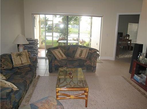 Beautifully furnished villa. Turnkey. Tiled living area overlooks roofed, screened patio and lake. Upgraded kitchen and baths with granite. 4 TV's, 6 ceiling fans. No age restrictions. Beautiful community pool and jacuzzi, exercise room, etc. No pets. No smokers. No exceptions. Coldwell Banker credit report required.(RLNE840375)