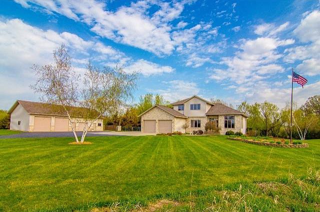 Captivating custom built home with incredible outbuilding! Open floor plan on main level with view of golf course. Recently updated kitchen has granite counter, SS appliances, Hdwd Flr. Luxurious master bdrm. Walk-out LL. Private backyard with creek.