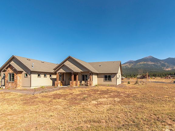 One of the finest views of the San Francisco Peaks available, absolutely breathtaking!!! You are going to love this single level, highly upgraded home located on a 2.1 acre lot that's just a couple years old! located only 10 minutes from Historic Downtown Flagstaff this home features a gourmet kitchen with a large island, upgraded appliances, soft close doors and drawers, quartz countertops and completely open to the dining and great room. Great room has 10' ceilings with a gas fireplace and rock surround, as well as 10' throughout. Porcelain tile flooring throughout most of home, heated floors in primary and guest bathrooms plus the 4th bedroom / office, Nest thermostat with sensors in all rooms, and custom motorized window coverings throughout the entire home!