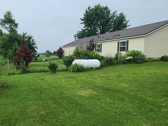 This beautiful 1998 Schult 4 Bedroom manufactured is on a block foundation with Land and a deed, It is a beautiful and large four bedroom 2 bath home with several upgrades, New steel roof with three efficient Skylights was installed in December 2020, Kinetico water softener, all appliances, kitchen was just remodeled. There is a very efficient pellet stove in addition to the gas forced air LP furnace. The open concept living space in this home is amazing with a large living/dining room extending into the kitchen area and family room with the fireplace. setting in the fully functional fireplace is also an electric insert that they use instead of cutting firewood as they both work ..This nicely landscaped home sits on three grassy acres and across the front of the home is a newly finished deck for enjoying the summer evenings and it also has a chicken coup and a 40 x 60 outbuilding/barn that does need work. This could be the perfect country home for your family and barnyard friends ..