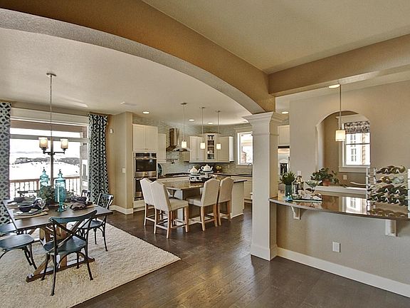 Home features and upgrades not reflected in Zestimate: - 180-degree unobstructed mountain views - Mantle-to-ceiling quartz fireplace in the great room - Sitting room with fireplace off master bedroom - Outdoor kitchen with custom fireplace - Custom window treatments throughout the home, including plantation shutters on all front and side windows, and custom roller shades on all back windows to showcase views - 'Nook' with built-in desk and ample cupboards off kitchen - Counter-to-ceiling custom back splash in kitchen, kitchen 'nook,' bar, and powder room - Built-in desk in hall area on upper floor - Large balcony off master bedroom (3rd floor) - Covered second floor back porch that runs the entire width of the home with sweeping views - Full-home steam humidifier - Custom trim and wainscoting throughout home This amazing model show home is an open 2-story with a finished walkout basement. Plenty of space with 6 bedrooms plus study. Large open great room with a stunning custom fireplace. Spectacular gourmet kitchen includes quartz countertops, extensive hardwood flooring, stainless appliances, large island, butler's pantry, custom outdoor kitchen with fireplace. Perfect for entertaining! Finished walkout basement with additional outdoor living space. Beautiful full yard landscaping with irrigation and fencing. Enjoy breathtaking mountain views from large covered deck as well as sweeping views down the foothills. Colorado elegant luxury throughout! Pool and clubhouse community with beautiful parks and over 17 miles of interconnecting trails.