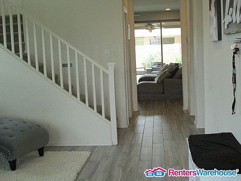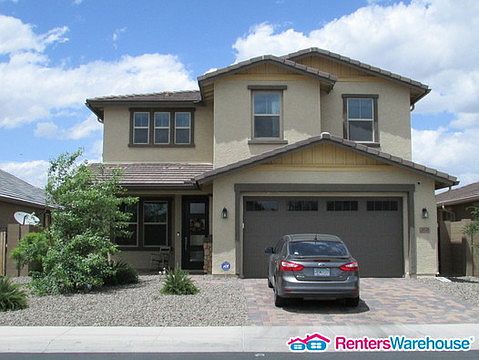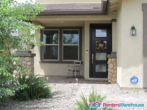 Only a year old! Spacious home with wood look tile, carpet, blinds, and ceiling fans throughout. Separate living area. Family room opens to the gorgeous kitchen featuring dark cabinets, granite countertops, stainless steel appliances, gas stove top, double ovens, tiled backsplash, a huge island, pantry, recessed and pendant lighting. Master bedroom has a walk-in closet and a bathroom en suite with double vanities, and an oversized tiled shower. Backyard offers a covered patio, built in BBQ grill and fridge, and a grassy area. Washer/Dryer included! Three car garage. Great location - close to the 101 freeway, Westgate Entertainment District, Tanger Outlets, shopping, dining, and entertainment. Pricing $1900 + Tax + Service Fees. When texting, please provide the address.