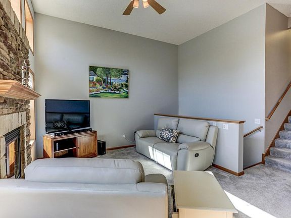 Former Model townhome - still in model condition - features vaulted ceilings, absolutely gorgeous stone fireplace, large windows, awesome kitchen and high-end granite, master suite & fully finished lower level all in an ultra-convenient location.