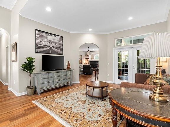 Gas fireplaceGranite countertopsFrench doorsEat-in areaSpacious kitchenSolid wood cabinetsTile in the bathrooms