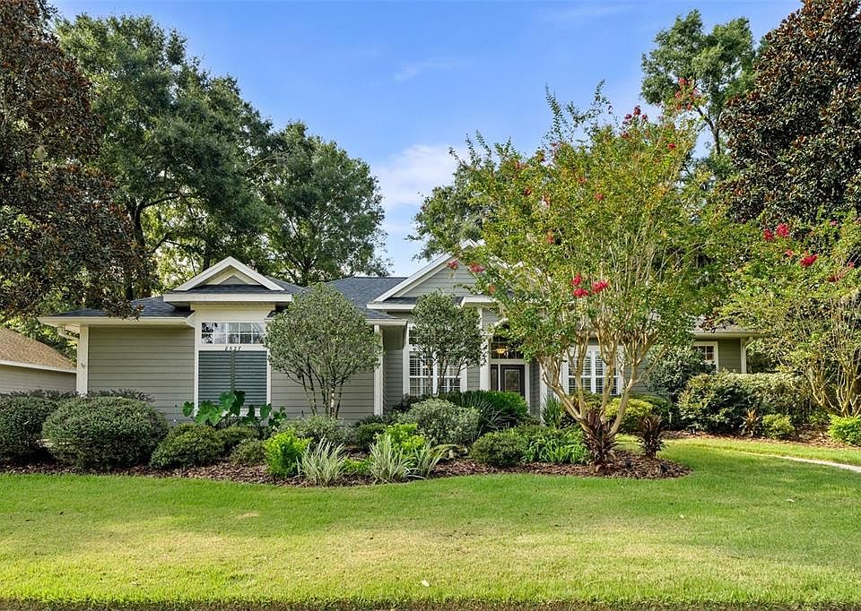 Under contract-accepting backup offers. Welcome to this updated home in Cobblefield! This beautiful 3-way split home has 4 bedrooms, 3 1/2 bathrooms plus a bonus/office next to the owner's suite. Upon entry, you are welcomed into the formal living and dining rooms with french doors leading to the extended screened. The flooring is recently installed wood grained luxury vinyl plank that flows throughout the home with tile in the bathrooms. The inviting spacious kitchen features beautiful solid wood cabinets, granite countertops, and newer stainless steal appliances. This opens to the eat-in area and the family room with high ceilings and a gas fireplace. The private primary suite has dual closets and a fully remodeled bathroom with dual sinks that must be seen to appreciate. The details in this home include stone bathroom countertops, crown molding and an office with plantation shutters, built-ins and double french doors. Enjoy entertaining on the lanai overlooking a private fenced yard. This home is move-in ready with upgrades including a new tankless hot water heater and a newer roof (2022). You will love this community with a large pool, playground, sidewalks and plenty of green space. This home has it all, including a great location near Haile, Celebration Pointe, I-75, and UF/Shands. You don't want to miss the opportunity to make this Cobblefield home yours!