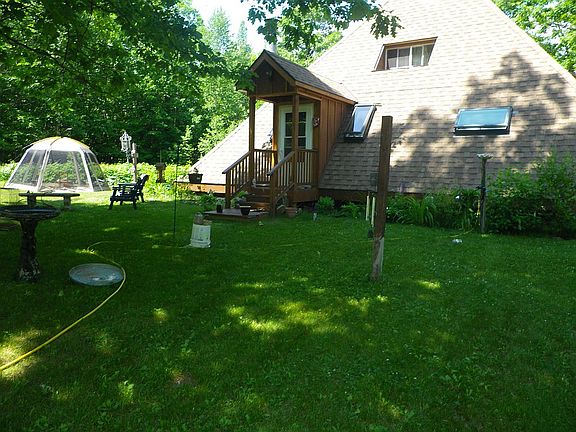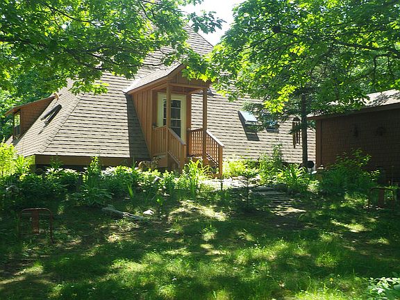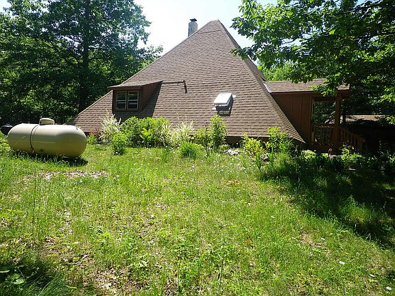 Contemporary pyramid home with 2.5 baths, 2 bedrooms with large eat in kitchen. Has dining area and living room. Newer roof, all new skylights, newer furnace, propane water heater and water softener. Whole house water filter. Fiberoptic internet available.