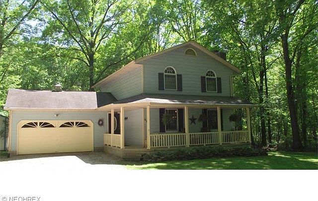 You do not want to miss taking a closer look at this wonderful home. It is situated on 5 acres of Park Like setting. You walk up onto the large front porch and enter into the homes foyer that leads you to a large living room with full brick wall with beautiful fireplace. The large kitchen is a chef's dream with lots of counter tops, cabinets for storage, fully appliance and opens up to the charming dining room. 1/2 bath, nice size laundry room completes the first floor. The 2nd floor has a large master suite with faulted ceiling & private bath. 2 other nice size bedrooms and 2nd full bath complete the second floor. The LL is partially finished into a nice size space great for entertaining or watching the Sunday Game. From of Laundry room you lead out onto a large deck overlooking a private backyard. The detached garage is 30 X 40 and has office space and wood burner for heat. Some updates includes hardwood floors, detached garage, furnace and air conditioner. Room sizes and sq. ft is approx.