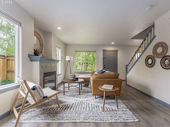 Beautifully updated home in the heart of St. Johns neighborhood. Comfortable living room featuring gas fireplace and lots of windows. Dining room with slider to back yard. Laminate hardwood flooring throughout the main level. Open concept floor plan. Kitchen featuring granite countertops, pantry and SS appliances, including gas stove. Large primary bedroom with walk-in closet and private bathroom featuring jetted tub and walk-in shower. Two other generously sized bedrooms upstairs with a "study nook" at the top of the stairs. SW facing, private, fenced yard with deck and turf area. Two car garage.