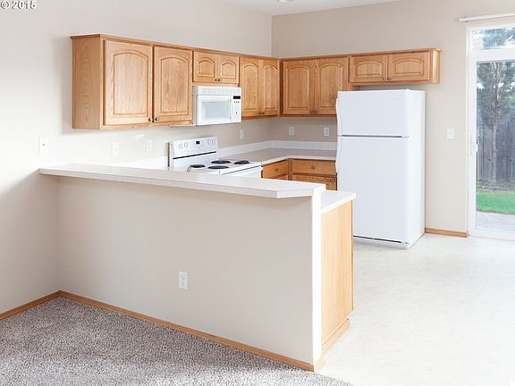 Spacious home w/ high ceilings and lots of natural light. Open floor plan on main floor which features: an open kitchen w/ eating bar, LR w/ fireplace and a slider leading outside. Large master bedroom w/ bathroom and vaulted ceilings. Move-In ready. Brand new carpet throughout and freshly painted interior.