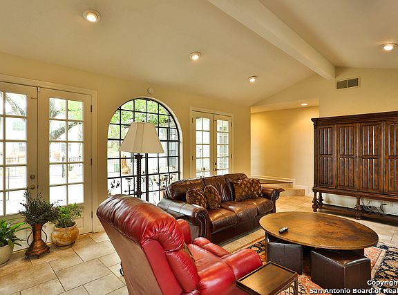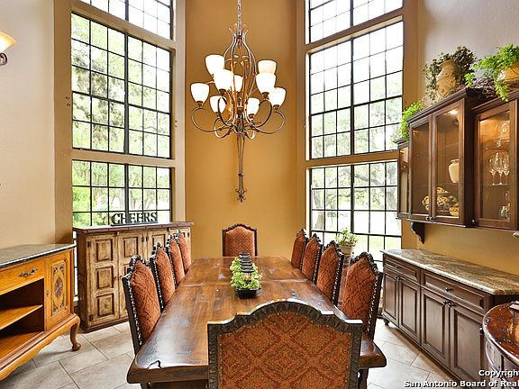 English Castle-like home on 1 acre in gated community of Raintree Woods in Fair Oaks Ranch. Unique, open floor plan w/ tasteful updates & modern finishes. Newly built Keith Zars pool & patio connecting main house to detached, fully functional guest house. Stainless Jenn-aire app, granite, marble counters, floor-to-ceiling windows, soaring ceilings, master suite w/ spa-inspired bath, travertine & hand-scraped floors. Multi-terraced deck, mature landscaping & trees.