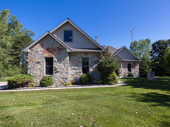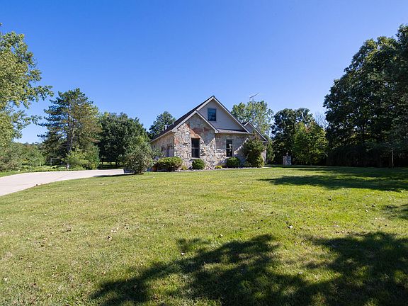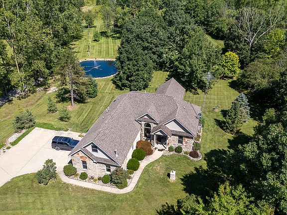 We don't really need words; these images illustrate the perfect balance of luxury estate and nature haven. And yet, a floor-by-floor description makes it that much easier to imagine how to seamlessly merge your life into this stunning family retreat. Open main floor plan has 17' ceiling, views in every direction, cook's kitchen, owners' suite, two bedrooms, dining, an additional bath. Stunning living area with fireplace that look out to deck and pond. A stunning stone fireplace makes a focal point for winter entertaining while access to the outdoor patio and pond offers 3 season outdoor living. Upper level has an entire living area that can be customized for your needs. A bedroom and full bath share the floor with a balcony. Wonderful daylight oasis with bar, huge living area, bedroom, bath and storage. Attached 2 car garage, detached 2 car garage, whole house generator on 10 acres. Access to private Blue Heron Pond private association access.