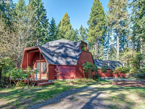 Dreamy Oregon opportunity for nature lovers a just beyond two popular trails & Downtown Eugene! This near 1 Acre Retreat comes w/ a quality one-owner, mostly one level dome home w/ new roofing, composite deck & railing + freshly stained siding. Two lofts overlook a great room complete w/ a big kitchen. Main bedroom delivers skylight views, access to the wrap around deck & serene pond. Deep soaking tub to relax in after harvesting berries, fruit & garden bed food or peaceful forest exploration.