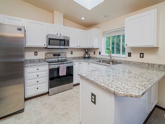 Updated from top to bottom - this home lives like new! Beautiful 4 bedroom, 2.75 bath split-level in Eagle Creek boasts vaulted ceilings, skylights, new paint inside and out, new roof in 2016, new hot water tank, new carpet throughout, new doors, new trim, granite counter tops in the kitchen and baths, two decks and a large, fully fenced back yard that backs to greenbelt and Eagle Creek Elementary School! Don't miss this beautiful home.