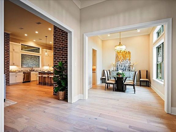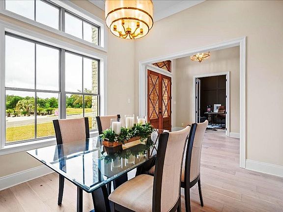4-bedroom 3-bath brick home with stone fa ade. GOLD FORTIFIED. Custom-built by skilled local talent for the Home Builders Association Showcase Home. Mahogany front doors lead into an open living room and kitchen just beyond a private office and formal dining room. White oak flooring in the living areas meets luxury Karistan carpeting in the four bedrooms. Wood shelving and paneling exclusive to this home designed and crafted by the builder. Cabinets in white oak and birch. Countertops in fantasy brown dolomite and white quartz. Custom mirrors and shower glass in bath and dressing areas finished with ceramic and porcelain tile, elegant lighting, and Delta plumbing fixtures in champagne bronze. Zero-entry master shower. Electric and natural gas. Dual Fuel Range/Oven. Tankless water heater. Outdoor fireplace and kitchen. Four-zone surround audio. Security system. Vinyl LoE Windows with Hurricane Protection.