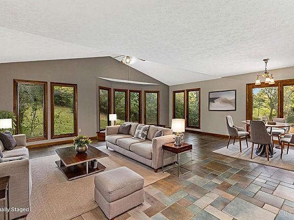 Discover peace and tranquility just 20 minutes from downtown. This updated 3 bedroom, 2 full bath tri-level nestled on almost 10 scenic acres with meadows, woods, and a pond. Perfect for horse enthusiasts, featuring a bank barn w/2 stalls, 70-ft riding ring, and plenty of fenced pasture. Inside, enjoy a modern kitchen, stylish baths, and a cozy family room with wbfp. Attached 2-car garage & oversized detached 2-car garage w/studio. The property consists of 3 parcels including a 4 acre buildable lot.