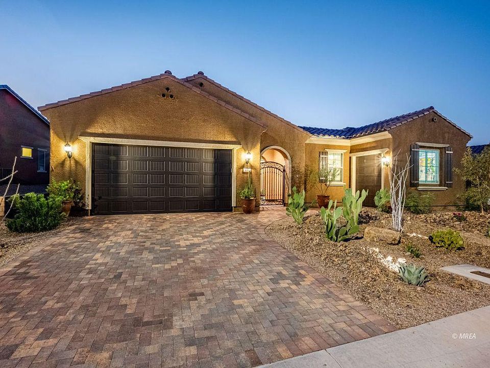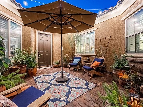 Modern and Delightful! Designer finishes. Fully Furnished JOURNEY floor plan in Oxen Ridge at Sun City! Quaint and Cozy Courtyard entry w/Iron gate, custom Lighting, Coffered Ceilings, 4" Shutters, French Doors, and Crown Molding. Gorgeous Engineered Distressed Wood Floors and upgraded carpet throughout. Custom Cabinetry; White with Glazed finish. Granite/Quartz Countertops. Kitchen is modern & bright. Stainless steel appliances. Upgraded hardware & counter height center island. Kitchenaid 36" Induction Cooktop. Double Ovens. Down the hall from kitchen is built in Bench Seats and Grand Butler/extra storage. Elegant Master Bedroom has extension as well as Kitchen sitting area/2nd den. Loads of windows and door to back yard. On the opposite side of home is a second Den and Guest Bedroom OnSuite. Three (3) Garages! Two Car Extended and separate Golf Cart garage. Colorful stain resistant finish. Pavered driveways and walkways. Fully fenced backyard has Water Feature, Misters, extra Pavers and Extended covered patio. Cactus paridise! Mature beautiful low maintenance landscaping. Delightful inside and out!