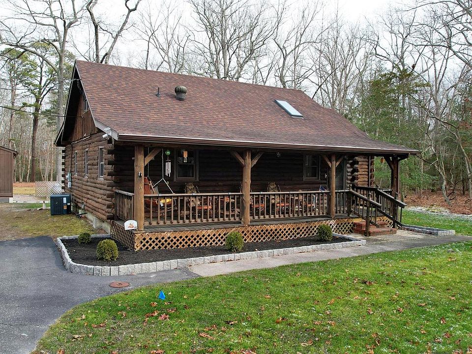 Rare Log Home for Horse Lovers, Hunters or Fishing Enthusiasts, over 12 private acres with two horse stalls and outside water. On the corner ofHay Road, a dirt road that leads you to the Mullica River for fishing, Hunting or Horseback riding. Cozy log home features newly refinishedhardwood floors, new plush carpeting, freshly painted, new granite counter tops, The great room features custom timber beams and cathedralceiling, Relaxing dining area at the rear of the home overlooking the backyard where you will see an abundance of wildlife, Large covered frontporch perfect for a couple rocking chairs to enjoy the peace and pure serenity, rear deck adds an addition area to relax after a long day at work.Mechanics and woodworkers dream of a detached garage like the one you'll find at the end of the asphalt driveway