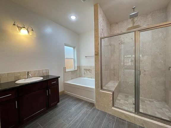 Beautiful new home for rent! The home comes with a full range of custom-quality amenities like stone or tile flooring, granite countertops, open and large backyard, covered patio, laundry room. Give us a call to schedule a showing of the property. Thank you. Month to month Lease. Landscaping included. Renter is responsible for all utilities charges. No Smoking allowed. No pets are allowed.