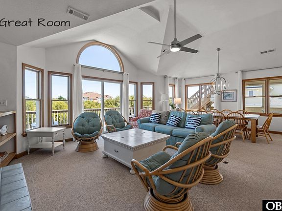 Located in the popular oceanside community of Whalehead—where spacious 100 x 200 lots and a stylish variety of 4–12 bedroom homes define the neighborhood—this beautifully maintained 5-bedroom, 3 full and 2 half-bath retreat offers the perfect blend of comfort, style, and coastal charm. With over 2,800 square feet of living space, the open floor plan features vaulted ceilings and a bright, spacious living room with a cozy fireplace—ideal for unwinding after a day at the beach.