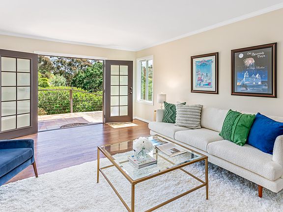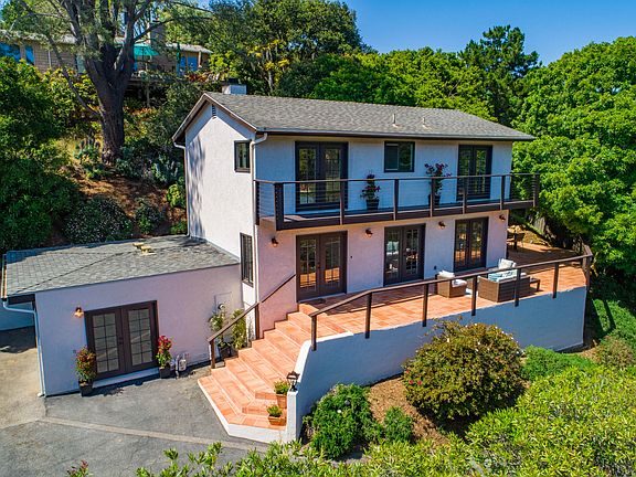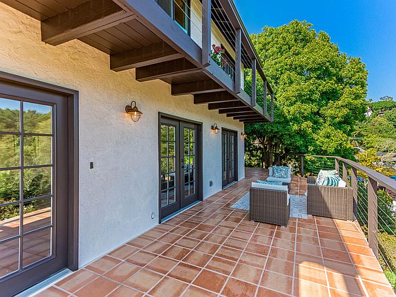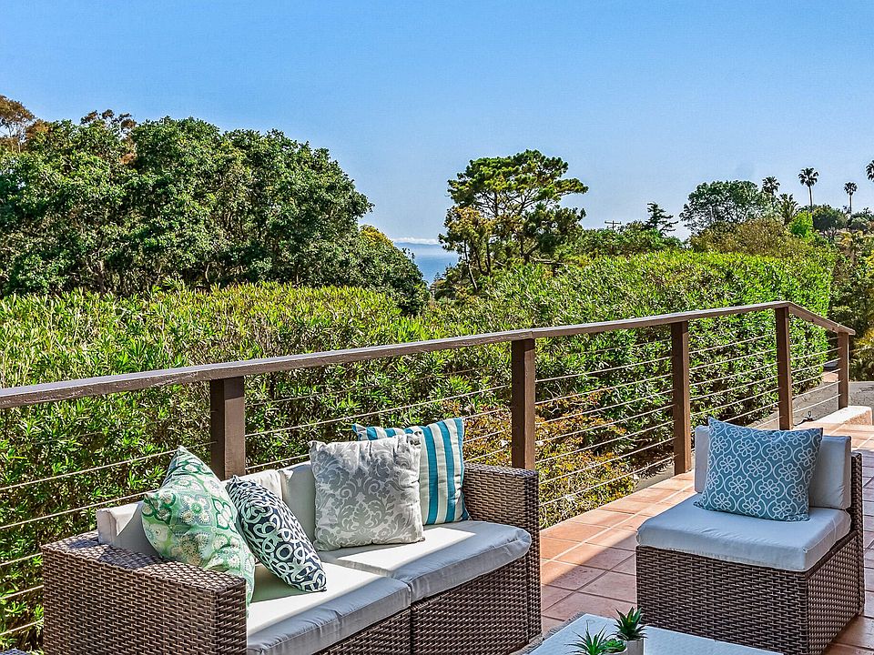 This charming 3 bedroom, 2 1/2 bath home is truly the epitome of the Mesa lifestyle with ocean views & beautiful outdoor patios to enjoy California living. Originally designed with a Mediterranean flair & recently updated, it's summer living at it's best! French doors open from almost every room to enjoy the view & surrounding lush greenery. Great floor plan for entertaining with gourmet kitchen, spacious island & dining area, & cozy living room with fireplace. Situated above the street on a private driveway there is a sense of privacy & serenity. Ensuite primary bedroom & second bedroom both open to the upper balcony with peaceful views. Custom SB sandstone hard scape with colorful drought tolerant plantings. Short stroll to Mesa Lane beach, Hendry's, Elings Park & Mesa shopping. Two car attached garage with one bay converted to possible office space with French doors - great for remote working or art studio.