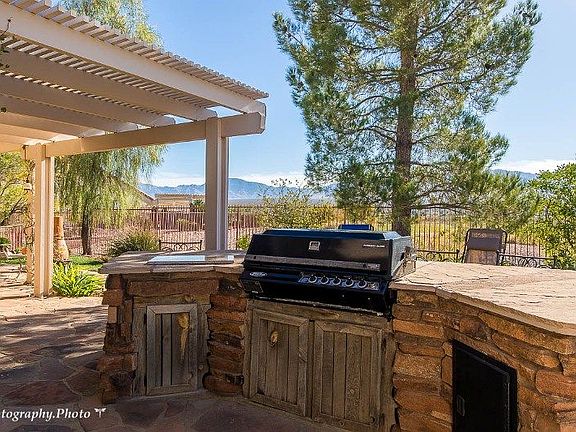 Original owners with a building, interior design and art background have put their hearts and souls into this home with flair and loving care! The fence and gate extend to the front of the house which adds security and privacy. The entry way is lit with triple wall sconces. Great room has built in entertainment center, pot shelves, and a Fanimation plantation fan. Dining room has custom built wood shutters and views to the mesa.Kitchen counter tops are veined granite with a back splash of tumbled marble and glass. Dropped in double sink. Master bedroom also has custom made wood shutters, custom color paint and a metallic bronze accent wall which extends into the master bathroom. Glass vessels with antique bronze faucets and 5 light bar lighting in both bathrooms. Extended patio on the back and 3 tiered pergola on side. Built in BBQ island seats 6. 2 tiered water feature and pond. 10 ft dry bar with storage. Palms, pines, vines and flowers. Views to the south and west. So much more.