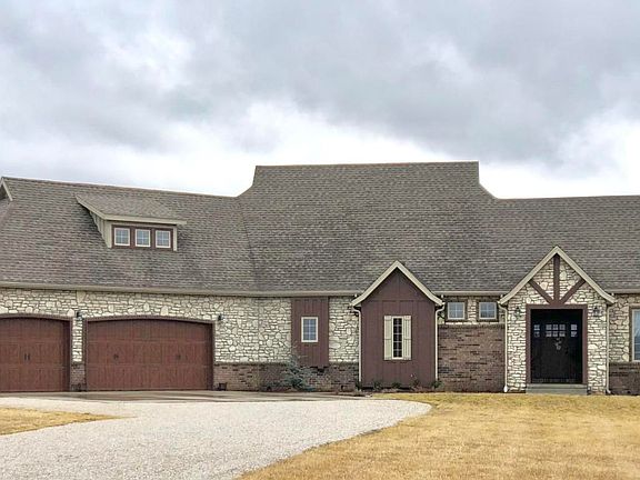Gorgeous brick and stone home on 3 acres+/- in desirable country subdivision. This home has a very grand entrance. Large foyer that leads to an open concept living, dining, and kitchen area with hardwood floors. It has beautiful wood cathedral ceiling with exposed beams and overlook upstairs into the living room. Floor to ceiling stone fireplace and mantel with gas insert. The dining room features large windows that let in tons of light and make the home warm and inviting. The kitchen focal point is the stone backsplash and island/bar with granite, pantry and stainless steel appliances. Large private master suite with double sinks, jetted tub, walk-in closet and huge tile walk-in shower. Upstairs has a bonus room with cathedral ceiling and exposed beams.