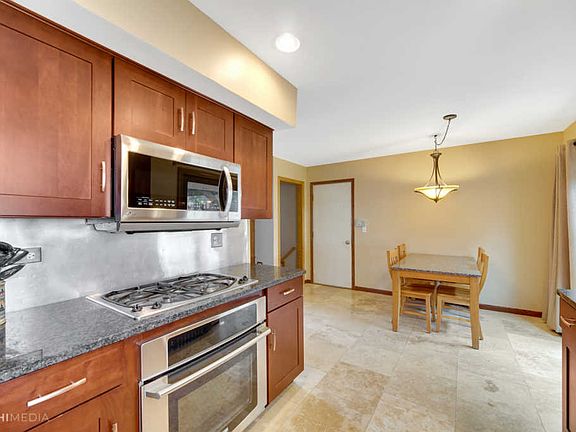 Updated 3 bed, 1.1 bath home with fantastic fenced yard and a gazebo. The remodeled eat in kitchen has newer soft-close cabinetry, granite counters and travertine flooring that extends into a huge pantry area. Sliders off the kitchen lead to a sizeable patio with gazebo, play house, play set, shed and a brand new fence. Completing the main level is a slate tiled entry, living room and dining room with hardwood flooring and an updated powder room. Upstairs are 3 large bedrooms all with custom closet organizers and a remodeled full bath. The lower level offers a huge family room, laundry area and a large storage area. Attached 2 car garage. Minutes to downtown Geneva. Top rated district 304 schools