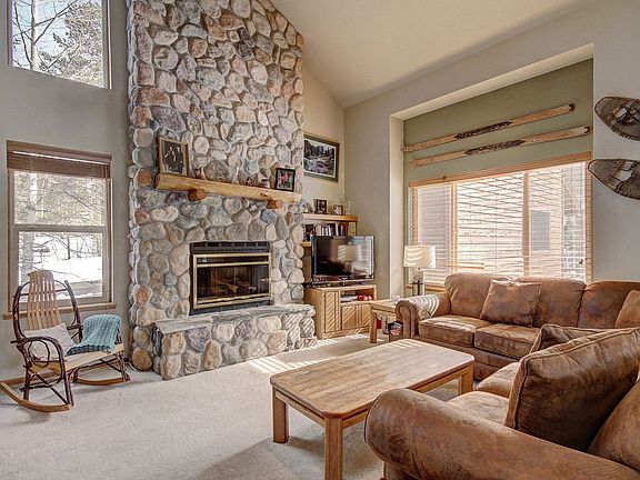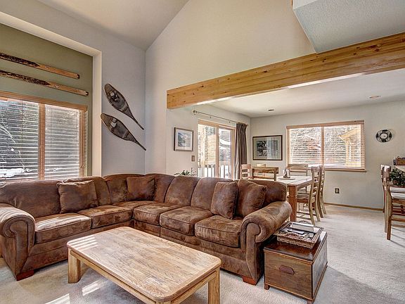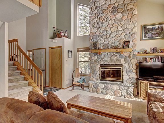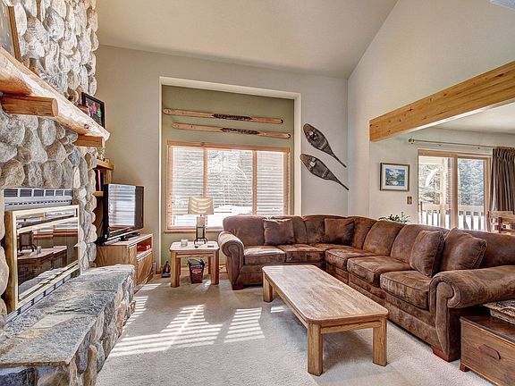 Coveted address in Mountain Side offering SW views of Peak 1 over spacious backyard. This well-kept residence has upgraded windows, wood-lined ceiling in the master, updated cabinetry, open kitchen and natural gas stone fireplace in the great room. 3-bedroom floorplan (one on each level) each with a bath. Garage for all the toys has nice built-ins. Second living area on lower level for guests or separation of generations. Lots of utility in a great package.